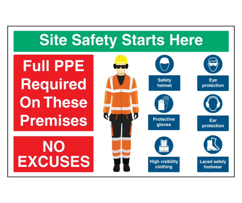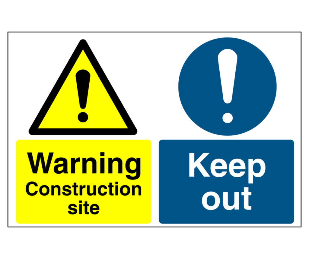 Construction and safety signs for building sites and workplaces, helping you meet regulations and protect workers and the public. Durable, clear, and suitable for indoor and outdoor use.